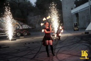 Пиро-огненное шоу исполняется только снаружи! Минимальный необходимый размер площадки: 15 х 15 метров